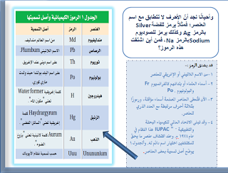أسماء عناصر الجدول الدوري بالعربي قلمي